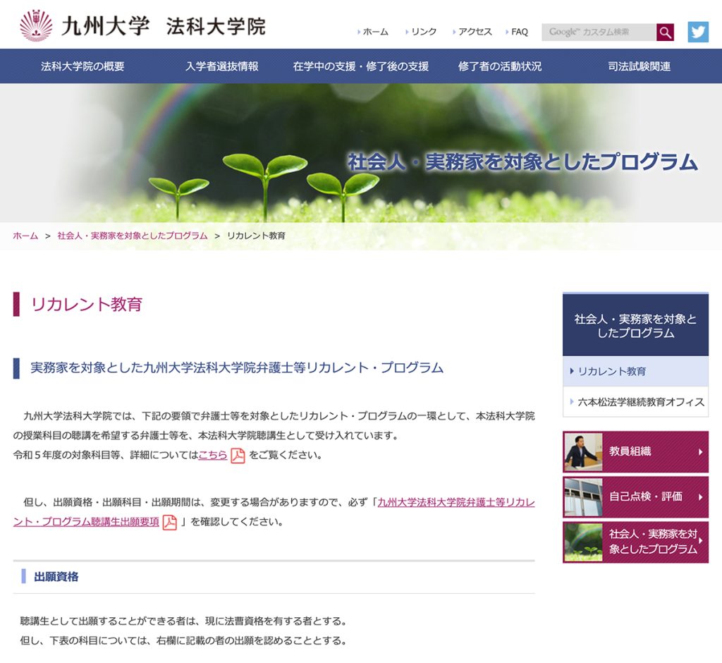 実務家を対象とした九州大学法科大学院 弁護士等リカレント・プログラム