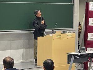 二次審査前に、参加していただいた高校生への研究への意欲・モチベーションを更に高めてもらいたいという期待を込め、本学高等研究院・佐々木裕之主幹教授による特別講演を行いました。講演では、佐々木先生の研究内容やご自身の体験等について高校生にもわかりやすく説明され、高校生の研究・探求の刺激になる話をしていただきました。